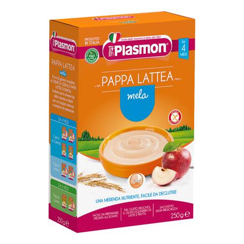 Vedi descrizione completa Plasmon Pappa Lattea MELA Fonte di proteine da latte e da riso. Cremosa e vellutata è adatta all'inizio dello svezzamento. Pronta all’istante, solo con aggiunta di acqua. Dal 4°/6° mese, salvo diversa indicazione del Pediatra.